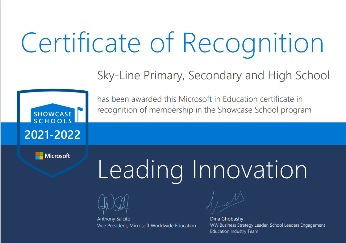 Theo đuổi mô hình “Trường học Điển hình Microsoft”, trường Tiểu học - THCS - THPT Sky-Line cũng đã gặt hái nhiều thành tựu ấn tượng, đặc biệt là đội ngũ 100% giáo viên đã được công nhận là Giáo viên Sáng tạo của Microsoft (Certified Microsoft Innovative Educator), 29 thầy cô đạt chứng chỉ MCE (Microsoft Certified Educator - chứng chỉ Nhà giáo dục được Microsoft công nhận), 17 giáo viên xuất sắc đạt danh hiệu Chuyên gia Giáo dục Sáng tạo (Microsoft Innovative Educator Expert - MIEE). Dù Đà Nẵng trải qua 2 đợt giãn cách xã hội kéo dài, học sinh Sky-Line vẫn lên lớp đều đặn, tiếp thu đầy đủ lượng kiến thức qua Microsoft Teams và các bài giảng sinh động trên Office 365. Bên cạnh đó, nhà trường còn tổ chức thi chứng chỉ tin học theo chuẩn quốc tế MOS (Microsoft Office Specialist) dành cho khối THPT.