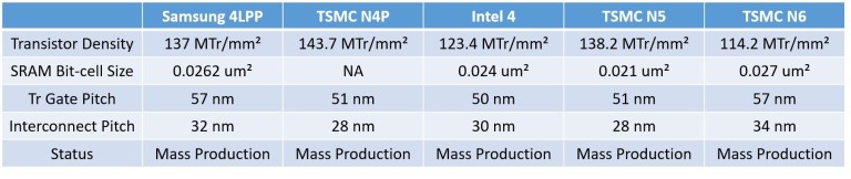 So sánh mật độ transistor giữa Samsung, Intel và TSMC