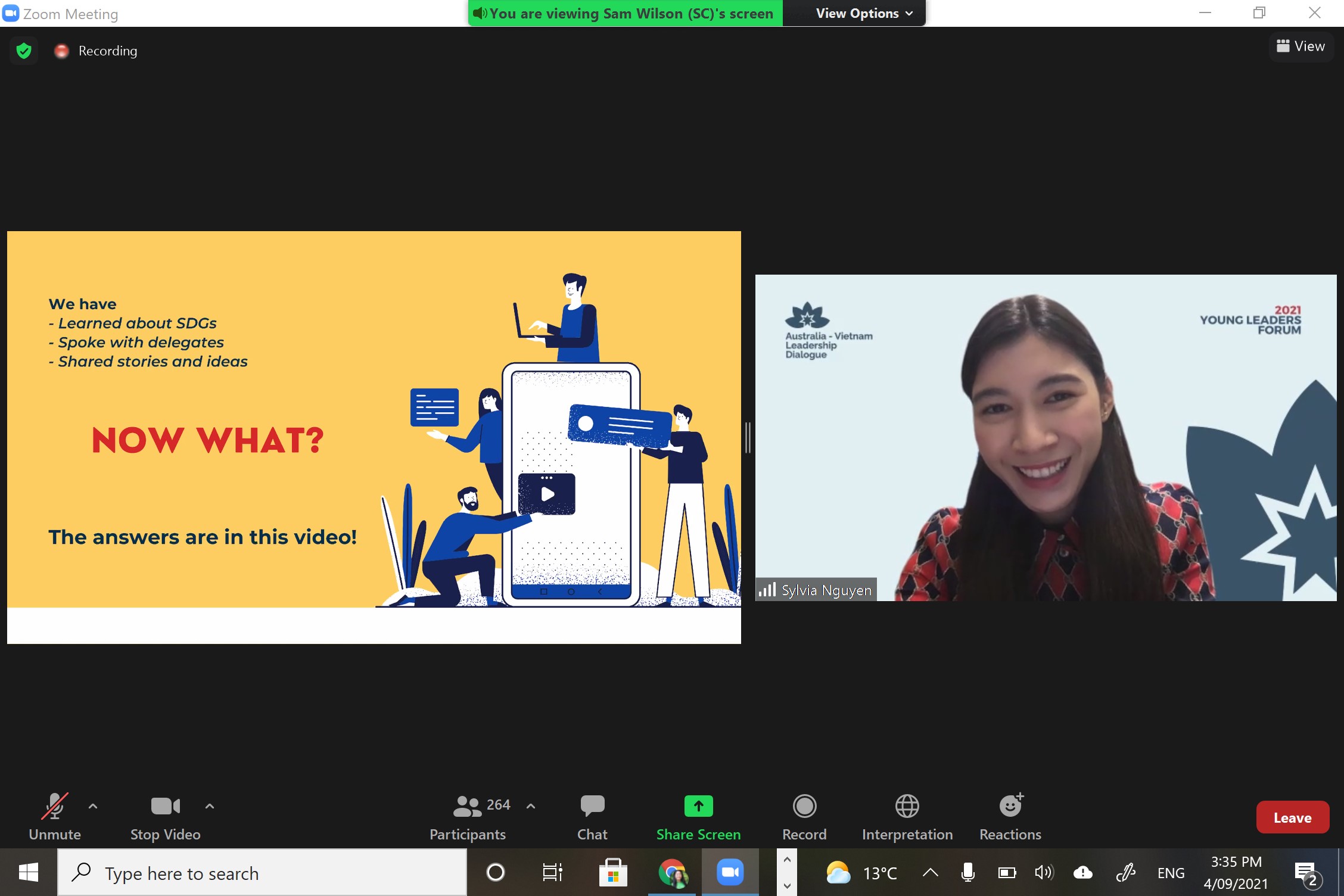 Tại Diễn đàn, Sylvia đã chia sẻ câu chuyện của mình về vai trò của bản thân như một tác nhân thay đổi để thúc đẩy tác động tích cực và bền vững: “Người trẻ ngày càng có tiếng nói và năng động hơn trong các vấn đề xã hội. Hơn bao giờ hết, ngày nay họ rất cần có cơ hội được học hỏi và trang bị các kỹ năng để có biến ý tưởng của mình ra thực tế, mang lại những tác động mạnh mẽ hơn. Diễn đàn lần này tự hào đã tạo một sân chơi cho giới trẻ Việt Nam hiểu rõ hơn về các mục tiêu SDGs và những công cụ để có thể đạt được những mục tiêu này.”