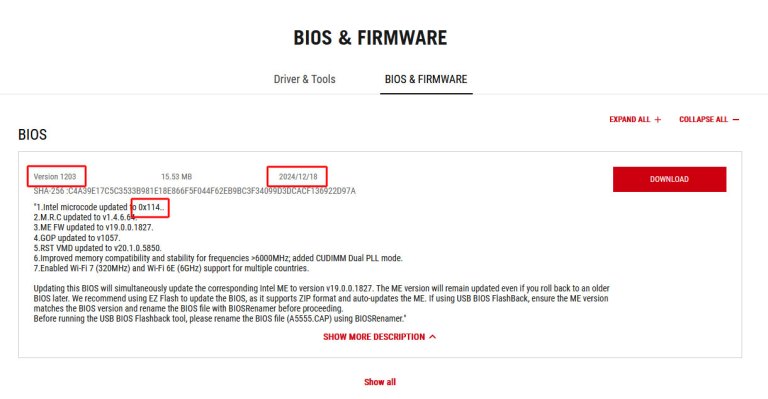 ASUS đã công bố BIOS mới kèm theo uCode 0x114 cho ARL-S