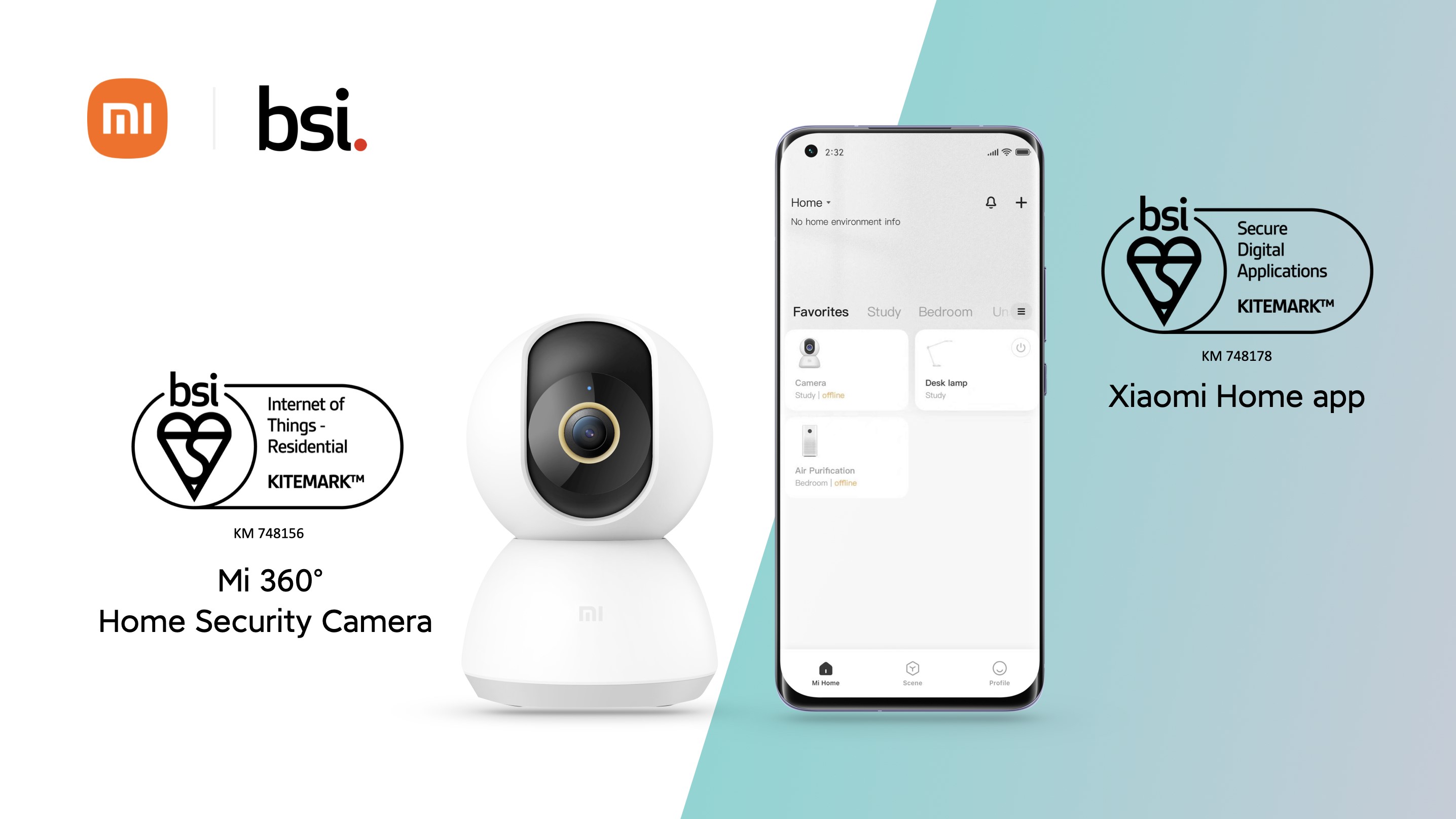 Camera an ninh Mi 360° và ứng dụng Xiaomi Home đạt chứng nhận Kitemark cho thiết bị IoT dân dụng, do BSI (British Standard Institution) cấp.