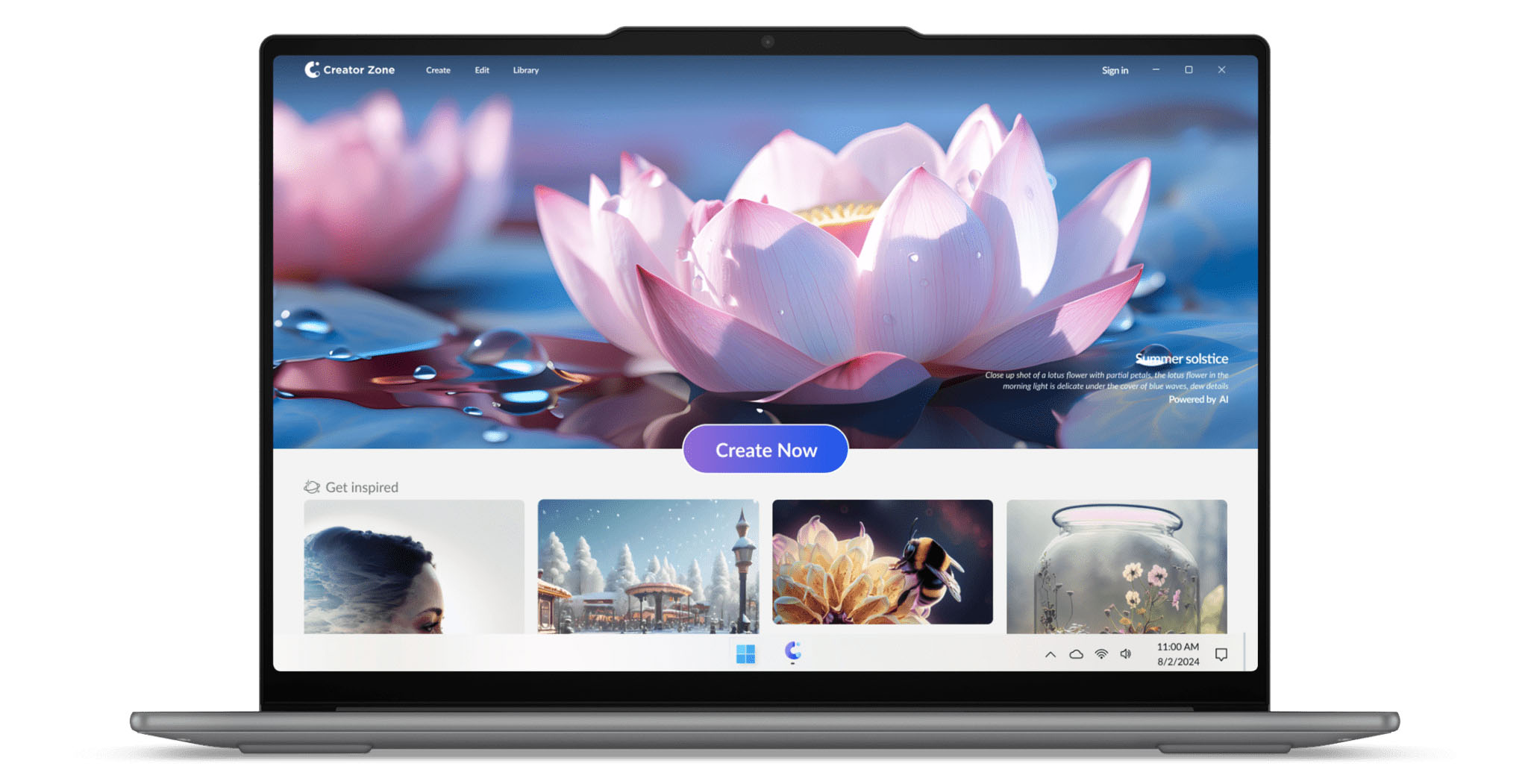 Lenovo Creator Zone là một công cụ sáng tạo AI được tích hợp sẵn trên một số dòng laptop Lenovo Yoga. Với công cụ này, người dùng có thể: