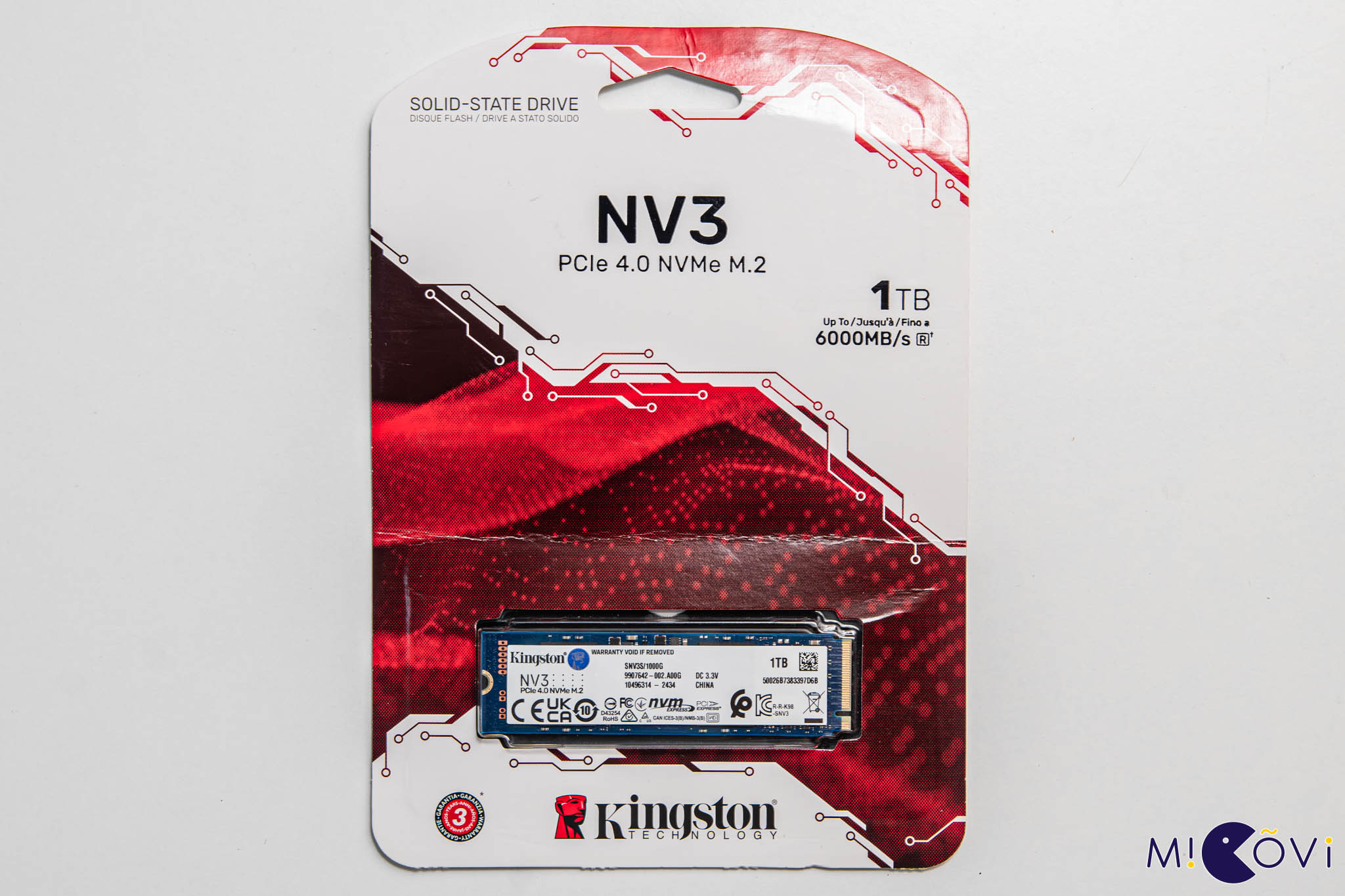 Kingston ra mắt NV3 Series có lẽ để chiếm lĩnh thị trường SSD bình dân với những thông số khá ấn tượng trên nền PCIe 4.0 x4 phổ biến. Theo hãng công bố, NV3 cải thiện khả năng đọc ghi tuần tự gần gấp đôi so với thế hệ NV2 trước đây, phù hợp để đáp ứng cho nhu cầu lưu trữ dữ liệu, đặc biệt là game. Phần đóng gói của NV3 SSD vẫn giữ phong cách quen thuộc với tông đỏ đen trắng. Tốc độ đọc tuần tự của bản dung lượng 1 TB được khoe ở mặt trước là 6000 MBps.