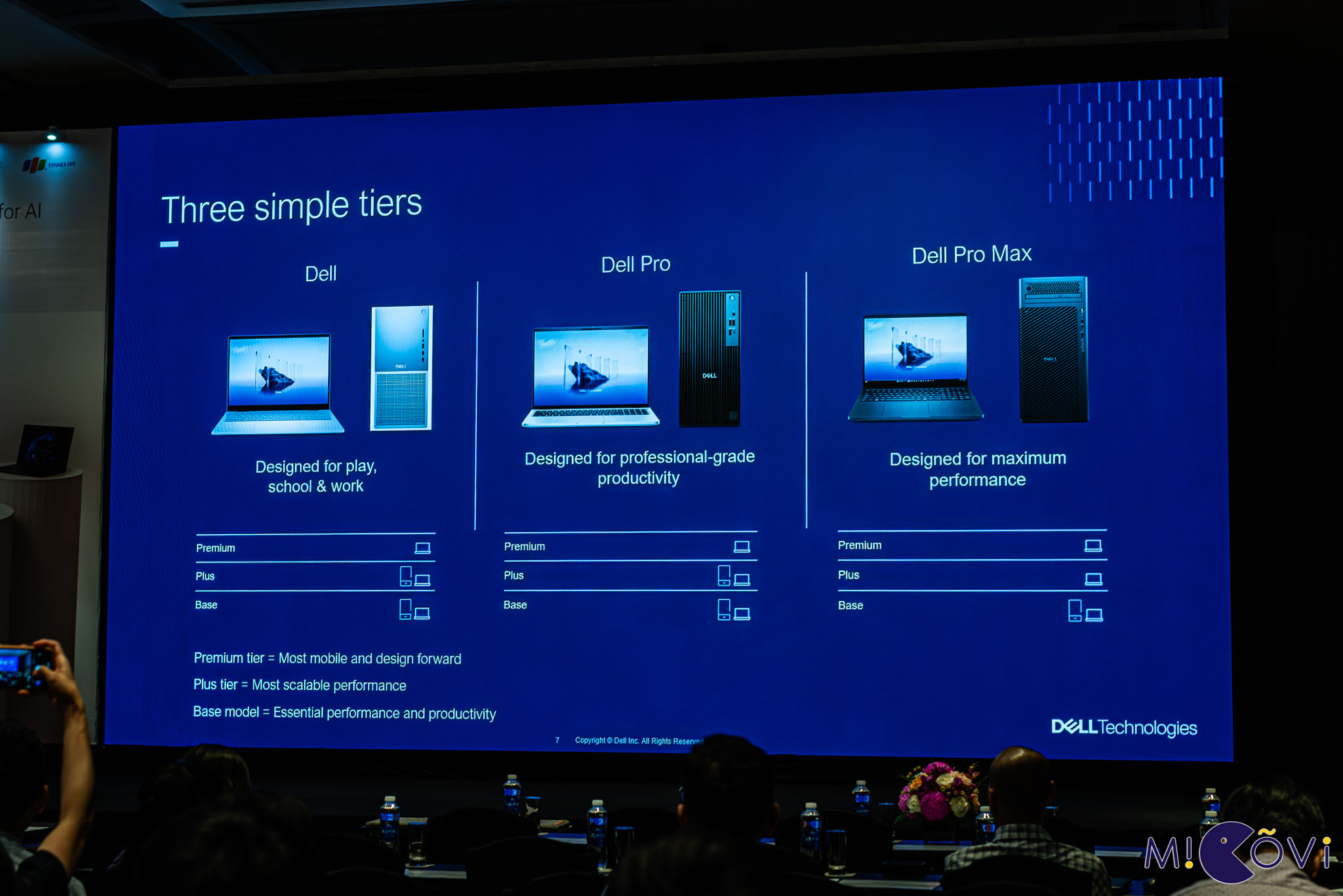 Đầu tiên, với chiến lược mới và thay đổi nhận diện, người dùng sẽ không còn phải “đau đầu” khi muốn lựa chọn 1 mẫu AI PC phù hợp nhu cầu nữa, tất cả mọi thứ được đơn giản hóa để mang lại trải nghiệm tốt nhất cho khách hàng. Những dòng sản phẩm như Latitude, OptiPlex, Inspiron, XPS hay Precision sẽ được “quy hoạch” gói gọn trong 3 dòng mới gồm: Dell (nhu cầu làm việc, học tập, giải trí hàng ngày), Dell Pro (cải thiện năng suất làm việc trong môi trường chuyên nghiệp) và Dell Pro Max (hiệu năng tối đa). Ngoài ra, trong từng dòng sản phẩm mới sẽ có sự phân chia thành 3 tầng sản phẩm: Base cho nhu cầu cơ bản, Plus với hiệu năng cao hơn và Premium tập trung ở thiết kế gọn gàng, cao cấp.