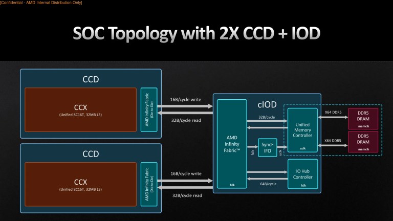 Ngoài ra, IOD còn là nơi trình điều khiển bộ nhớ (IMC) "thường trú". Vấn đề hỗ trợ bộ nhớ của AMD tương đối hạn chế hơn Intel cũng đến từ IOD ít khi được cải tiến. Với việc IOD được nâng cấp, hy vọng nhược điểm trên sẽ được khắc phục. Đặc biệt với bộ nhớ CUDIMM mới rất cần một IMC "hiểu" được chúng để làm việc hiệu quả nhất.