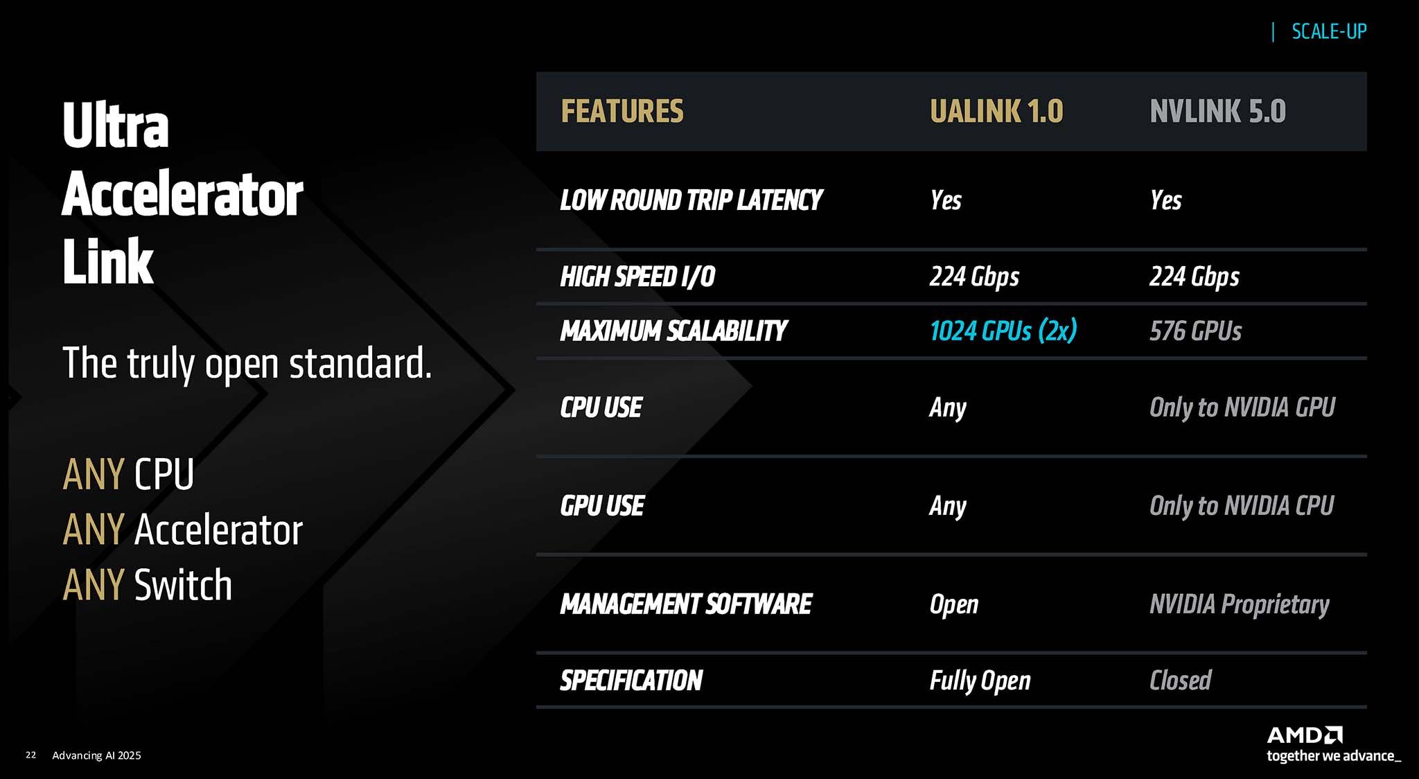 The decision to invest heavily in Ultra Ethernet with the Pensando Pollara product also shows that AMD is betting on an open, cost-effective, and highly scalable networking future for AI applications. This creates a certain contrast with InfiniBand technology, which has traditionally offered high performance but often comes with a higher investment cost and a less open ecosystem. While InfiniBand still has certain advantages in ultra-low latency in some specialized HPC scenarios, Ultra Ethernet is quickly catching up in terms of overall performance, while also having clear advantages in deployment costs and the familiarity of Ethernet technology in data centers. By offering a robust and highly programmable Ultra Ethernet solution, AMD can attract a large number of customers looking to build cost-effective AI clusters without being locked into a specific networking vendor. This also fits perfectly with the overall “open ecosystem” strategy that AMD is pursuing.