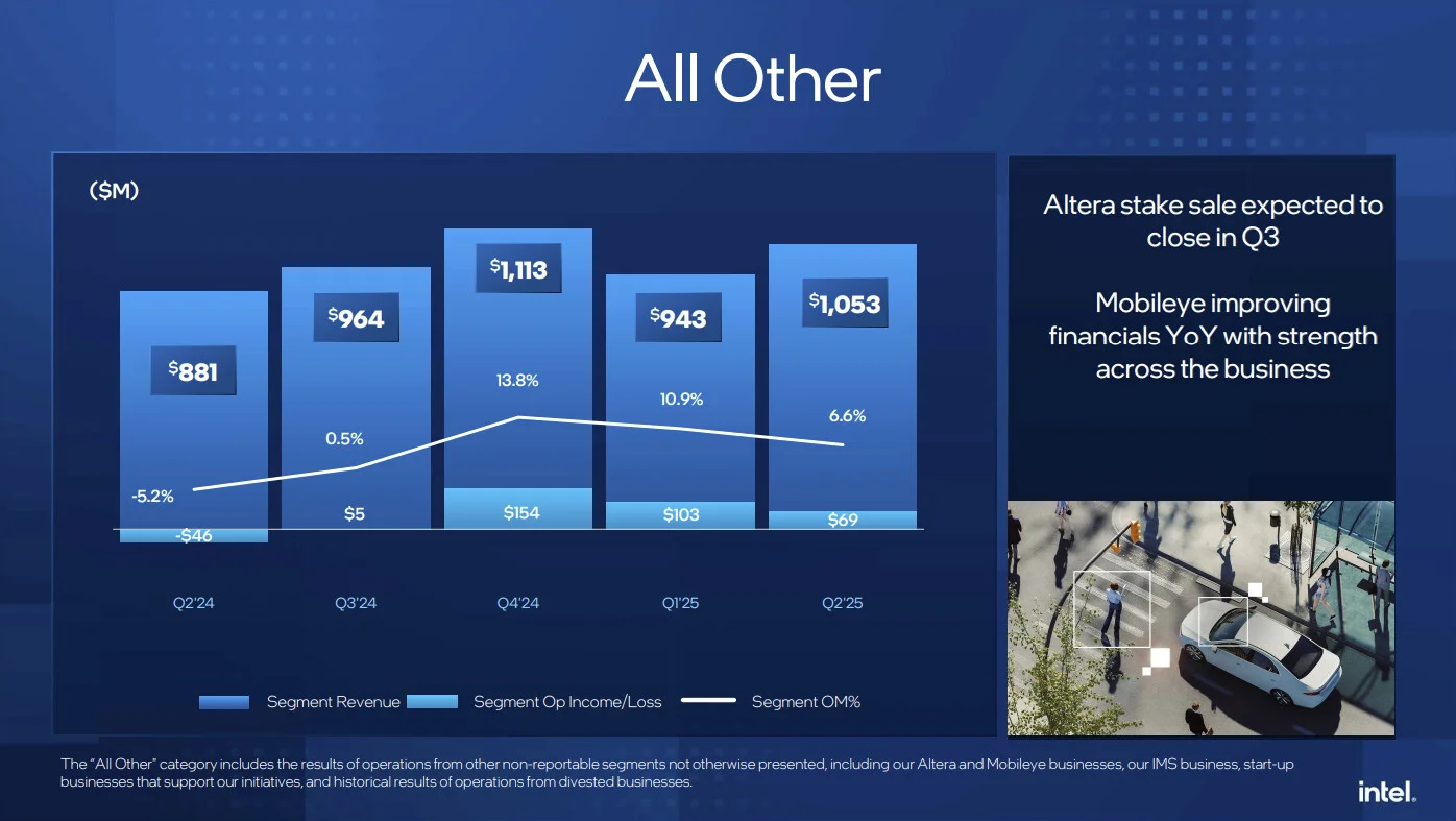 But in the latest Q2 report, everything has been “pruned” to only PC, datacenter and… Foundry. The non-core “branches” are collectively called Other. This move shows that this giant tree is entering a period of extremely strong restructuring, similar to IBM years ago. One of the most obvious “pruning” moves is the divestment of 51% of Altera shares that took place in April. Ironically, 10 years ago, Intel spent a lot of money to buy Altera for an amount equivalent to the record loss in Q3 last year.