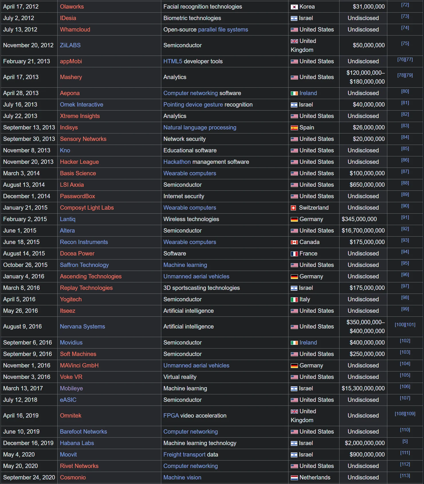 List of Intel acquisitions from 2012-2020, with Brian Krzanich as CEO from 2013-2018