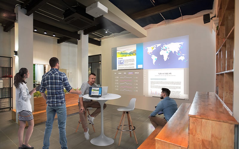 Dòng máy chiếu mới của Epson là giải pháp lý tưởng để khám phá những phương thức tiếp cận mới trong giảng dạy, làm việc hay thậm chí là quảng cáo nhờ loạt cải tiến hỗ trợ như máy chiếu đa năng, tính năng trình chiếu ghép lề nhờ đó người thuyết trình có thể tận dụng toàn bộ không gian trình chiếu liền mạch. Các tính năng trình chiếu như hiệu chỉnh hình học và tính năng trình chiếu ghép lề giúp sản phẩm hoạt động như bảng hiệu quảng cáo kỹ thuật số, dễ dàng thay đổi thông tin quảng cáo và làm nổi bật các thông điệp quảng bá theo ngày hoặc theo mùa.