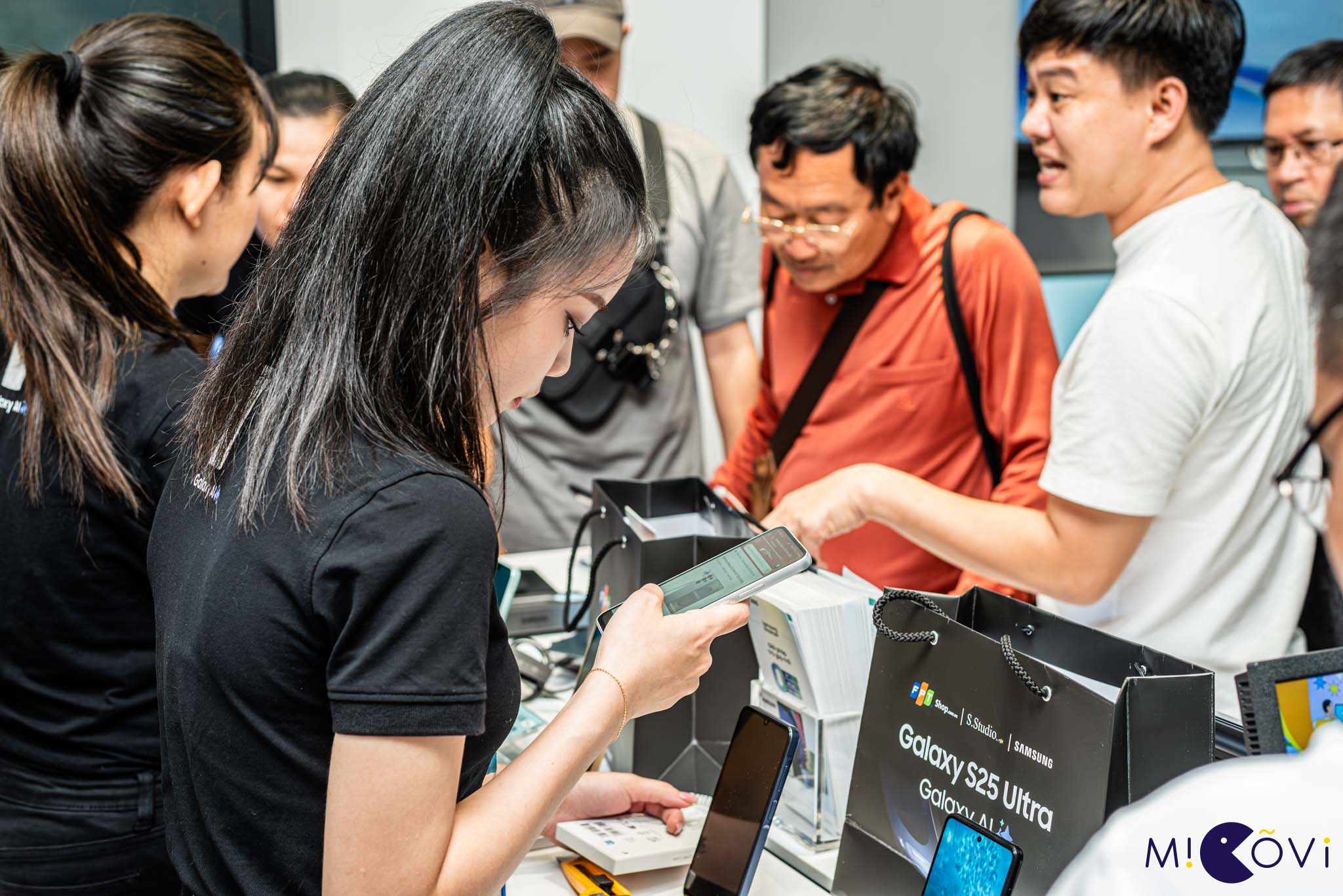 Rất đông khách hàng đến nhận Samsung Galaxy S25 Series tại FPT Shop vào ngày mở bán 8/2, kèm thêm sạc nhanh 45 W và cơ hội trúng vàng 9999.