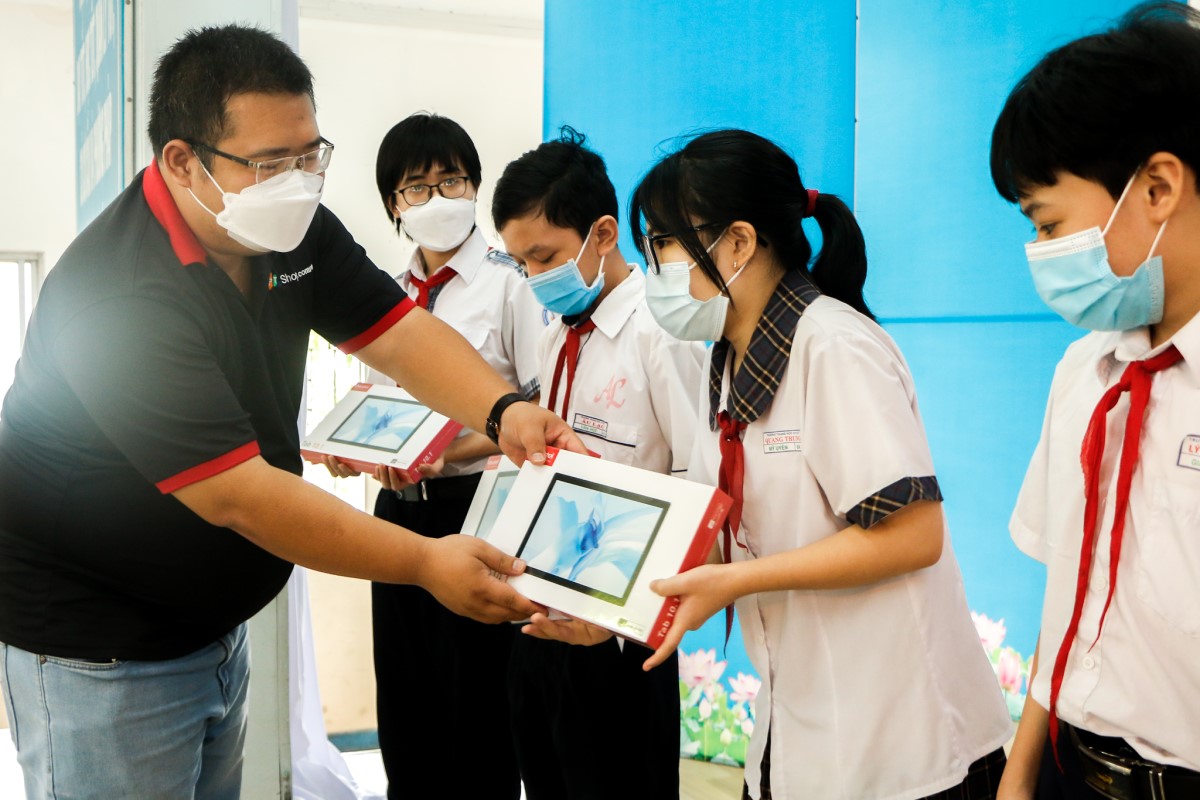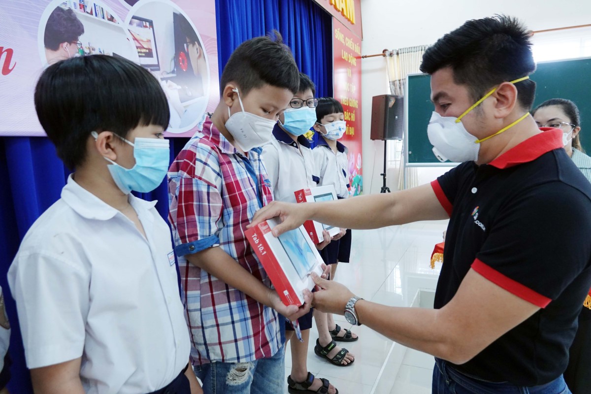 Theo đó, từ ngày 16/11 - 25/11/2021, FPT Shop cùng Báo Thanh Niên đã trao tặng hàng trăm máy tính bảng cho các em học sinh có hoàn cảnh khó khăn tại các quận: Tân Bình, Bình Tân, huyện Bình Chánh và Cần Giờ. Thông qua chương trình này, FPT Shop mong muốn sẽ tiếp thêm sức mạnh để các em an tâm hơn, dừng đến trường nhưng không dừng học và chung tay vun đắp cho những ước mơ của các em sớm trở thành hiện thực.
