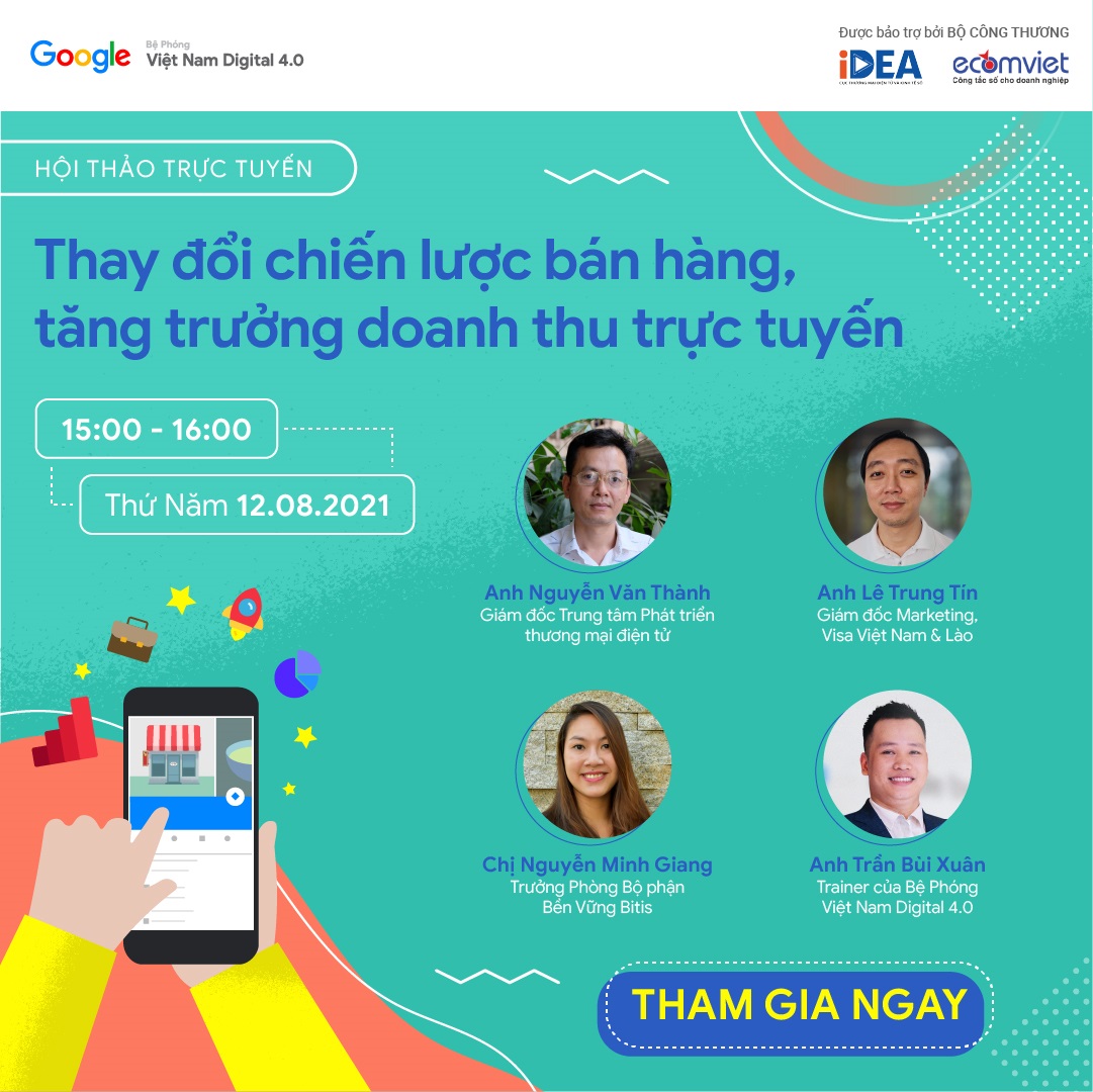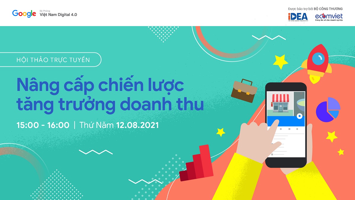 Hiểu được những băn khoăn của các doanh nghiệp vừa và nhỏ, chương trình Bệ phóng Việt Nam Digital 4.0 - một sáng kiến của Google, được bảo trợ bởi Bộ Công Thương Việt Nam, đã phối hợp cùng Trung tâm Phát triển thương mại điện tử (ECOMVIET) tổ chức buổi hội thảo trực tuyến tháng 8 với chuyên đề “Nâng cấp chiến lược, thay đổi doanh thu”.