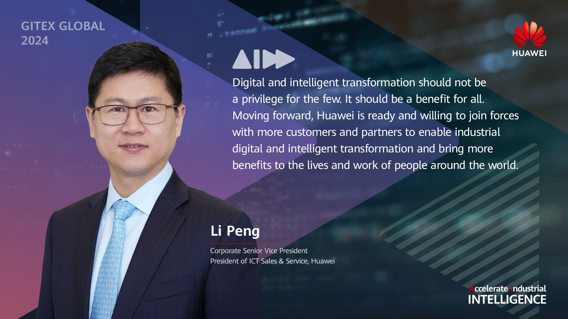 Ông Li Peng cũng chia sẻ về sự hợp tác chặt chẽ với các đối tác trên toàn cầu. Huawei đã thành lập 14 OpenLabs để cùng các nhà cung cấp giải pháp địa phương phát triển các giải pháp sáng tạo, phù hợp với nhu cầu riêng của từng thị trường. Tại UAE, Huawei và các đối tác đã cùng nhau tạo ra hơn 20 giải pháp đột phá.