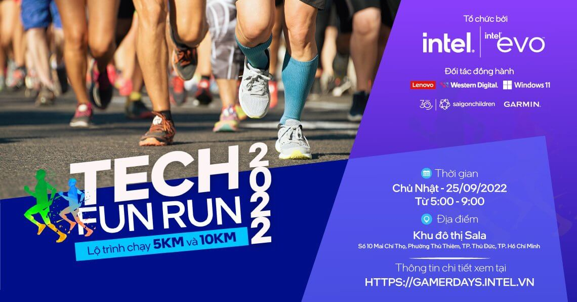 Ngoài sự kiện chính INTEL TECH CAMP, Intel Việt Nam cũng đồng hành cùng Microsoft, Lenovo và Western Digital tổ chức giải chạy Intel Tech Fun Run 2022. Với mục tiêu tạo ra một sân chơi lành mạnh để lan tỏa tinh thần thể thao và những giá trị nhân văn tốt đẹp, toàn bộ vé bán của chương trình sẽ được quyên góp vào quỹ Hỗ trợ trẻ em mồ côi do dịch Covid-19 do tổ chức Saigon Children’s Charity quản lý.