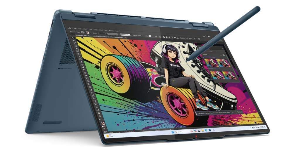 Yoga 7 2-in-1 được thiết kế để chuyển đổi linh hoạt giữa dạng máy tính xách tay và máy tính bảng, phục vụ cho người dùng sáng tạo. Cả 2 phiên bản 16 inch và 14 inch đều có khả năng xoay gập 360 độ, cho phép sử dụng ở nhiều chế độ khác nhau như laptop, tablet hoặc lều. Bút cảm ứng Yoga Pen (tùy chọn) có thể được sử dụng để vẽ và viết trên màn hình cảm ứng. Máy trang bị bộ xử lý AMD Ryzen AI 300 Series, có khả năng cân bằng hiệu năng và tiết kiệm năng lượng. Màn hình cảm ứng PureSight OLED có độ phân giải lên đến 2.8K, độ sáng tối đa 1100 nits và tần số quét 120 Hz, mang lại chất lượng hiển thị hình ảnh chi tiết và mượt mà.