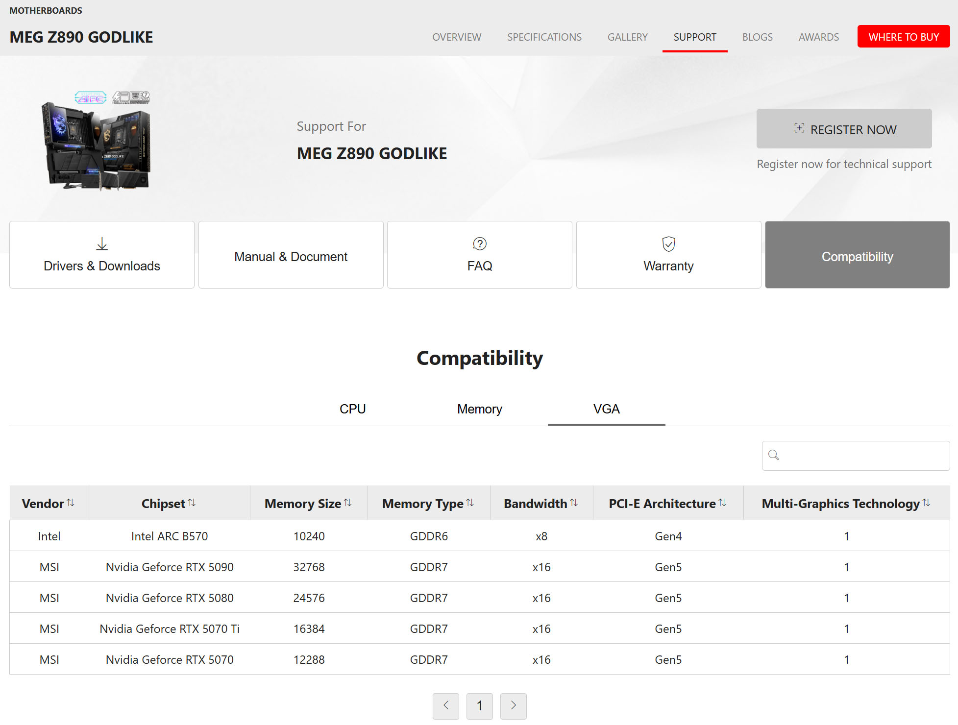 Lần đầu tiên ở trong video quảng cáo cho GeForce RTX 5080 Vanguard Launch Edition, hộp sản phẩm thể hiện con số 24 GB GDDR7, nhưng MSI không hề thực hiện đính chính, chỉnh sửa hay gỡ bỏ video. Lần thứ 2 ở phạm vi rộng hơn, hầu hết các mẫu mainboard MSI có phần Hỗ trợ, trong đó mục Tương thích - VGA, danh sách liệt kê có GeForce RTX 5080 do MSI sản xuất sở hữu dung lượng bộ nhớ là 24576 MB GDDR7.