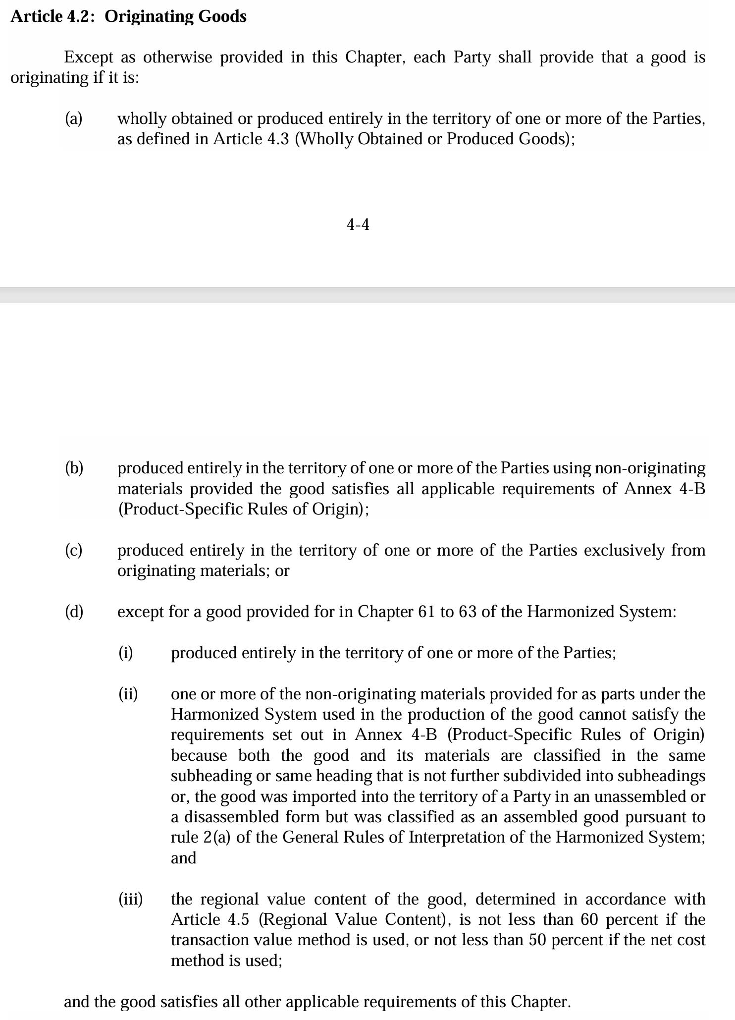 - Hoặc trải qua "sự thay đổi đáng kể về phân loại thuế quan" (tariff shift) tại khu vực này. Lấy ví dụ bánh mì làm bằng bột mì nguyên liệu nhập từ Việt Nam, vì đã có tariff shift từ bột mì thành bánh mì, do đó bánh mì trong ví dụ này đáp ứng được tiêu chí USMCA;
