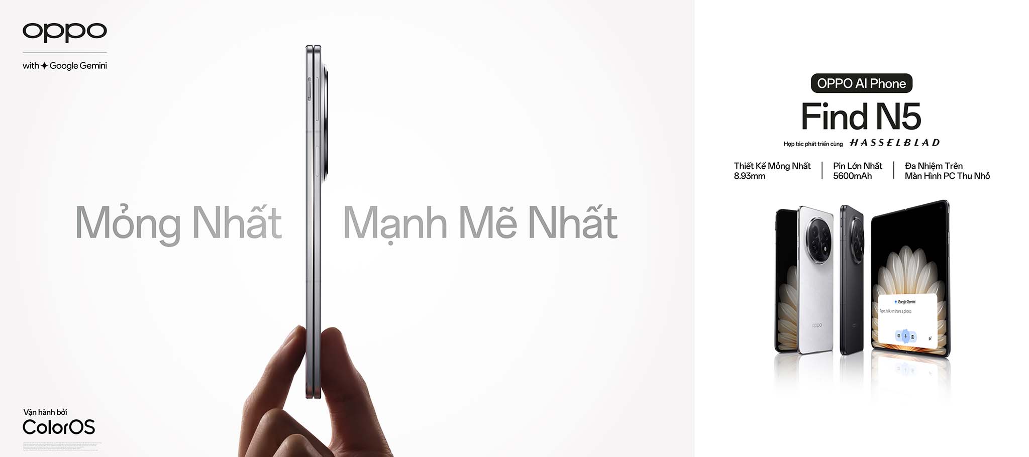 Smartphone gập OPPO Find N5 - Siêu mỏng, siêu mạnh, AI đột phá