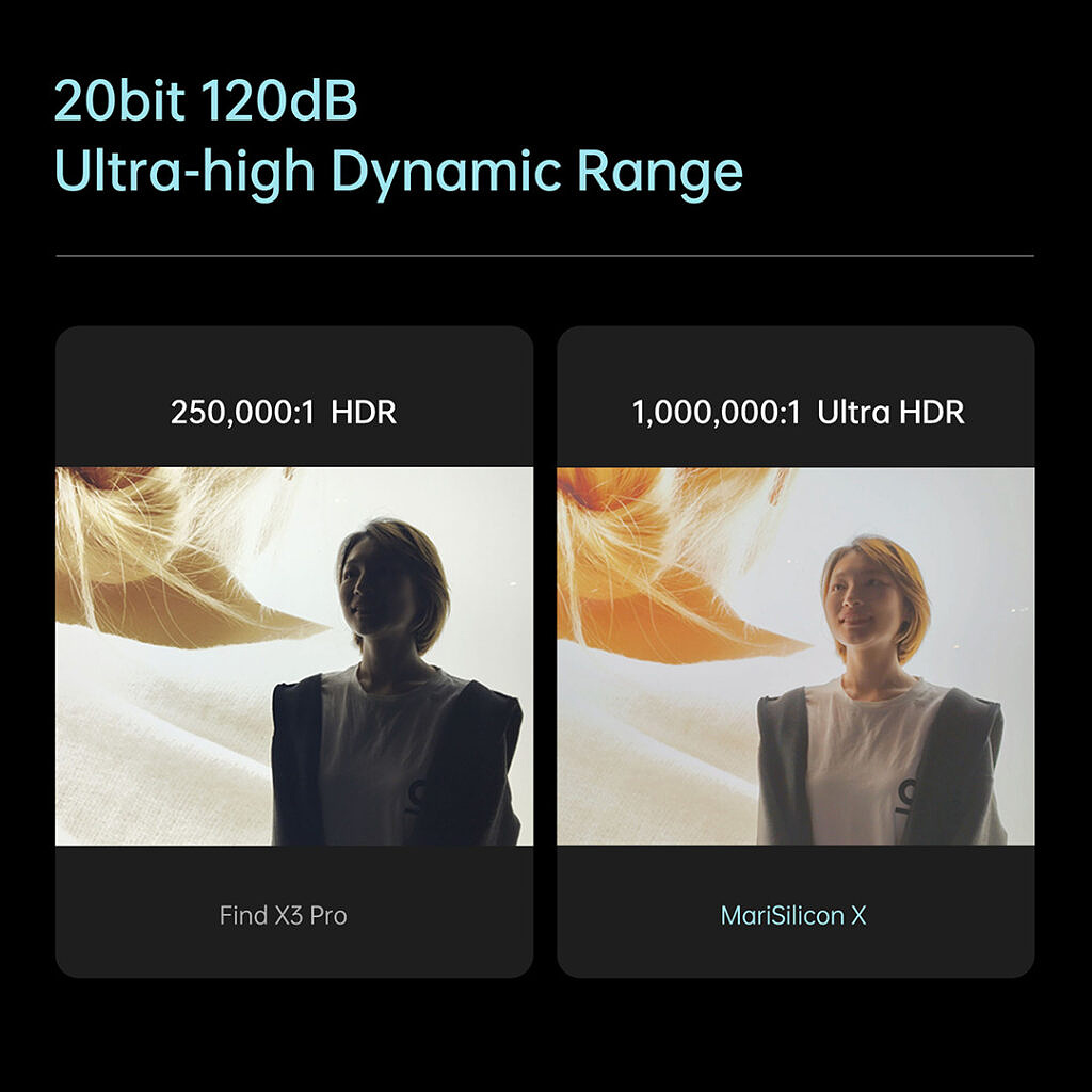 ISP tích hợp hỗ trợ chụp ảnh với dải động lên đến 20 bit 120 db, gấp 4 lần so với Find X3 Pro, từ đó nâng độ tương phản của ảnh lên mức 1,000,000:1 giữa vùng sáng nhất và tối nhất. Sức mạnh của MariSilicon X sẽ rất hữu ích khi xử lý các thuật toán hình ảnh và cảm biến RGBW do OPPO tự phát triển - yếu tố then chốt trong chế độ video đêm. Trên Find X3 Pro, chế độ video đêm chỉ có thể quay ở độ phân giải 1080p, tuy nhiên MariSilicon X sẽ cho phép quay ở mức 4K.