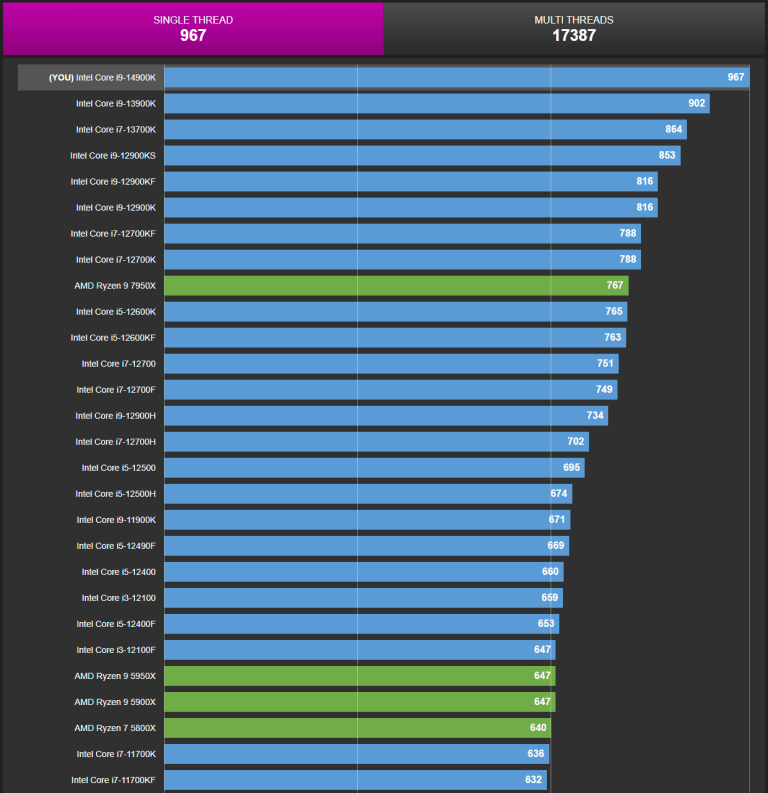Hiệu năng đơn luồng của Raptor Lake vẫn cao hơn Zen 4