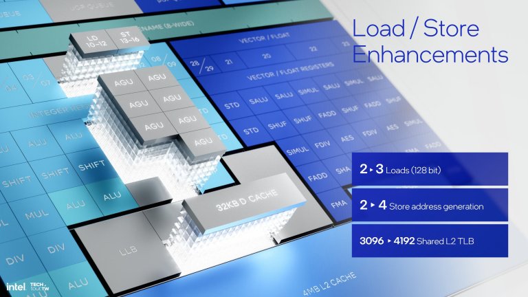 Front-end và Execution mở rộng hơn đồng nghĩa Back-end cũng thế. Chúng ta có tới 7 AGU thay cho 4 ở thế hệ trước. Chúng cho phép đạt tới 3 lượt Load 128-bit và 4 lượt Store. L2 TLB tăng 33% từ 3096 lên 4192 entry.