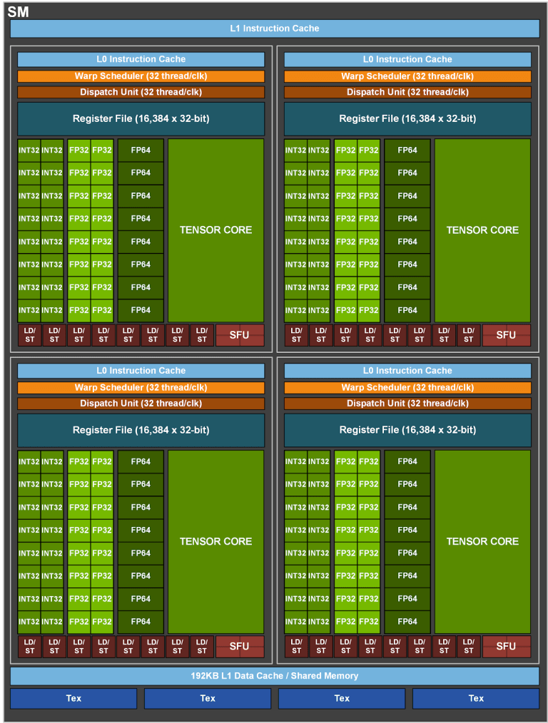 Sơ đồ khối SM trên GPU NVIDIA A100