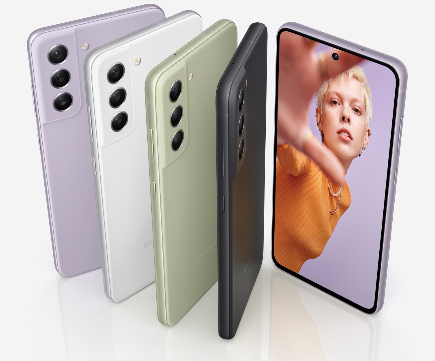 Cụm 3 camera sau trên Galaxy S21 FE 5G gồm cảm biến chính 12 MP, f/1.8, tiêu cự 26 mm, chống rung quang học OIS, lấy nét theo pha Dual Pixel, cảm biến telephoto 8 MP, f/2.4, tiêu cự 76 mm, zoom quang học 3x, OIS, cảm biến chụp góc siêu rộng 12 MP, f/2.2, tiêu cự 13 mm. Camera selfie có độ phân giải 32 MP, f/2.2, tiêu cự 26 mm, tính năng Phục hồi khuôn mặt bằng AI nâng cao giúp mọi chủ thể trong bức ảnh ở trạng thái đẹp nhất. Tính năng Quay Video Kép Bắt Trọn Khoảnh Khắc (Dual Recording) giúp người dùng có thể ghi lại khung cảnh từ cả 2 camera trước và sau cùng lúc, hứa hẹn mang đến trải nghiệm thú vị cho những video có tính chất âm nhạc theo xu hướng mới.