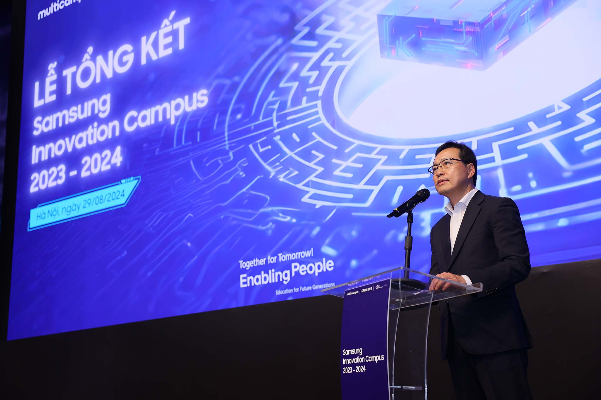Phát biểu tại buổi lễ tổng kết, ông Choi Joo Ho nhấn mạnh: “Samsung và các doanh nghiệp IT trên toàn cầu đang tìm kiếm cơ hội hợp tác và mở rộng đầu tư tại Việt Nam. Trong một tương lai gần, Việt Nam sẽ giữ một vai trò vô cùng quan trọng trên thế giới không chỉ dừng lại ở mảng điện thoại di động mà trên toàn bộ ngành công nghiệp công nghệ cao. Các em cần nắm bắt những thay đổi này của Việt Nam để tạo thành cơ hội của chính mình. Cùng với những chính sách tuyệt vời của Chính phủ Việt Nam, nhà trường và các doanh nghiệp toàn cầu như Samsung đang nỗ lực để đào tạo nhân lực trong lĩnh vực IT và bán dẫn, điều đó cho thấy tất cả đang xây dựng một môi trường vô cùng thuận lợi cho các em.”