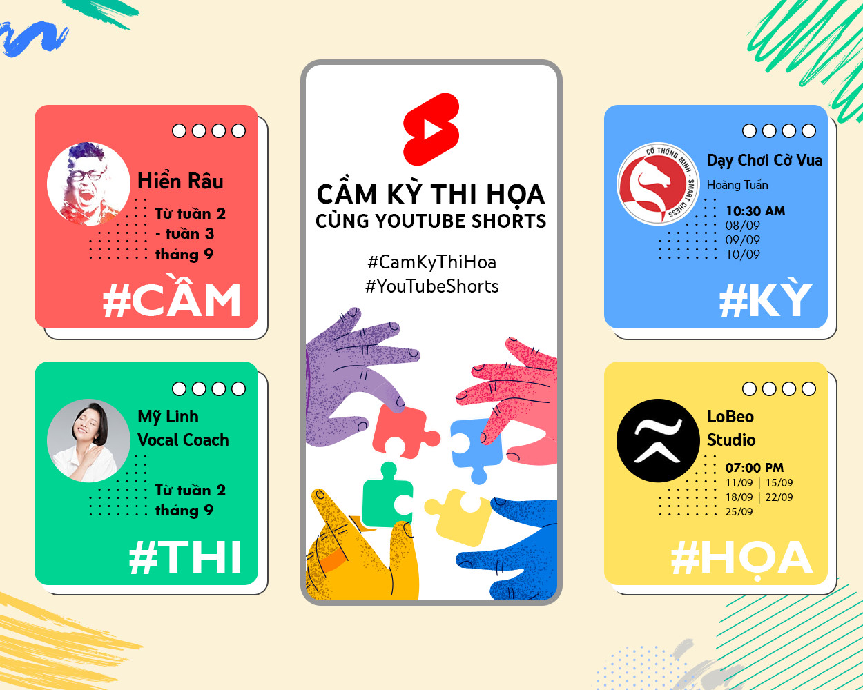 Trong tháng 9 này, YouTube Shorts hứa hẹn mang đến những giây phút giải trí và luyện tập thú vị cùng series “Cầm - Kỳ - Thi - Họa”.